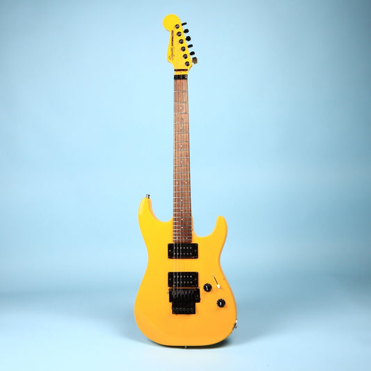 2002 Squier by Fender Showmaster HH Graffiti Yellow SLE Reverse Electric Guitar