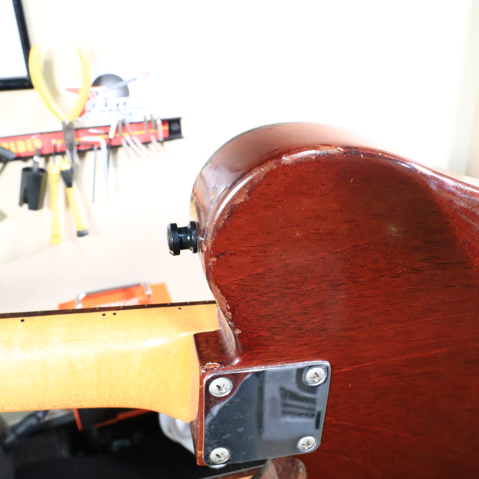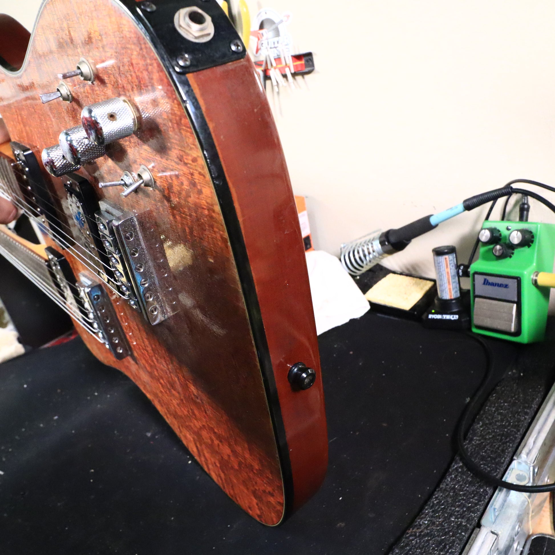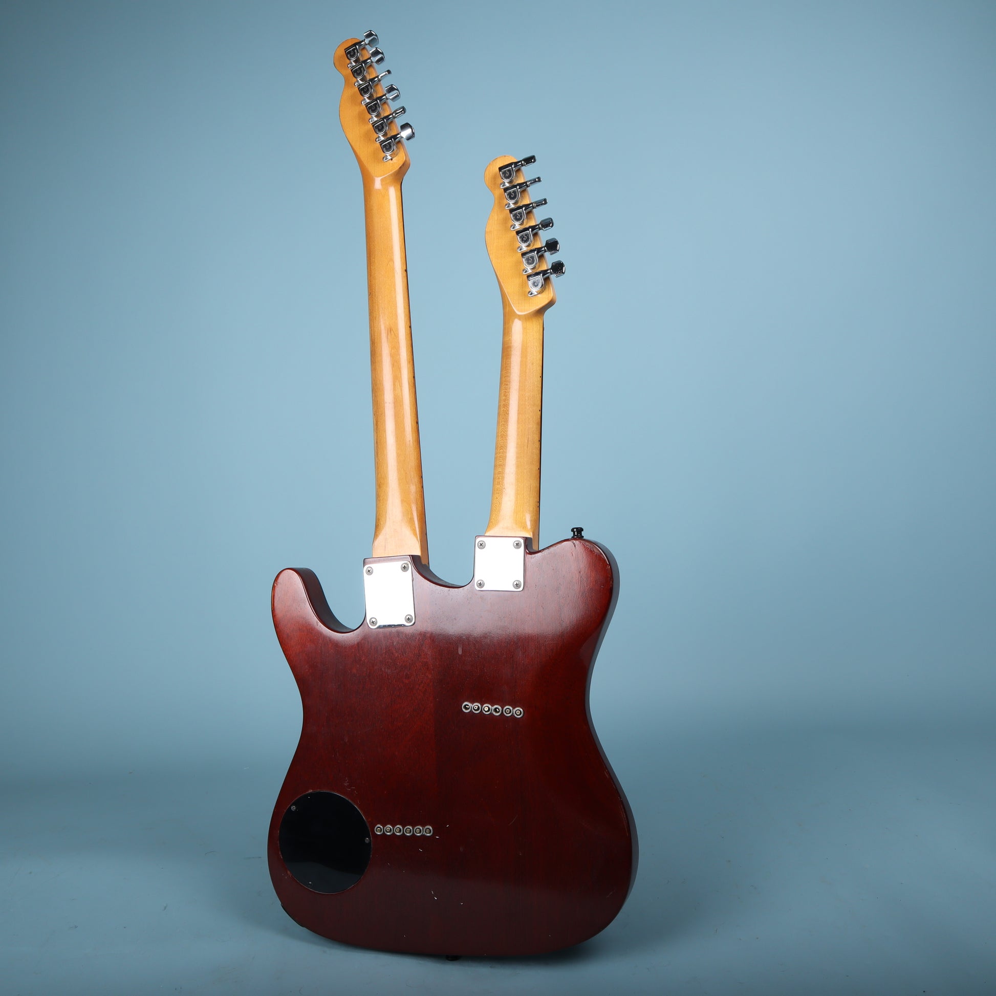 Tonally, this thing delivers. The dual humbucker (generic humbuckers with no name on them) layout gives you everything from thick, sustaining leads to punchy, articulate rhythm tones, and having two fully independent necks opens up musical territory you just can’t reach with a standard guitar. It’s the kind of instrument that sparks ideas the moment you plug it in, and you’ll find yourself writing parts because the guitar is sitting in your hands.