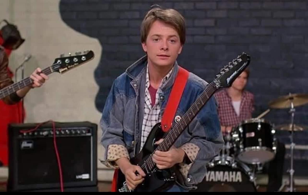 This is a fantastic opportunity to rock out like a 1980s movie!—the Ibanez RS440 Roadstar II Deluxe, famous for being the style of guitar used by Marty McFly (The Pinheads) during the Battle of the Bands audition in the movie Back to the Future. Don't wait for the DeLorean to hit 88 MPH—this is your chance to own a versatile, high-quality, 80s Japanese-built machine that will turn back the clock! :-)