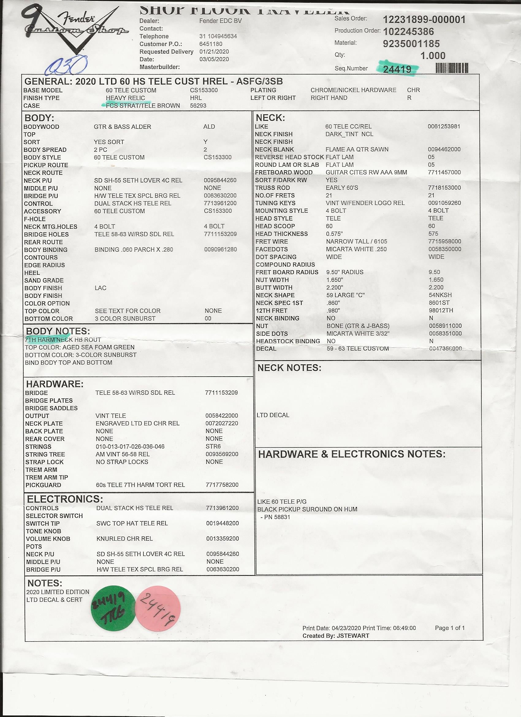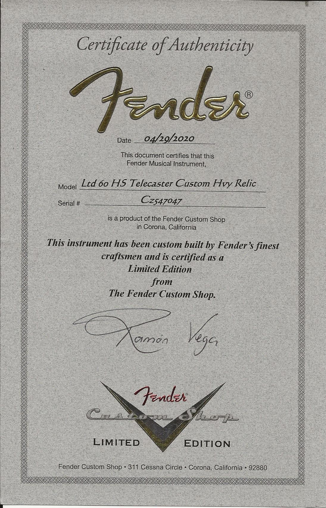 This is a 2020 Limited Edition Fender Custom Shop ’60 HS Telecaster Custom Heavy Relic, finished in a stunning 3-Color Sunburst with aged Seafoam Green top tones and built by Fender’s finest craftsmen in Corona, California. Certified Limited Edition, complete with original Certificate of Authenticity, this is not a standard production model, this is a statement piece.