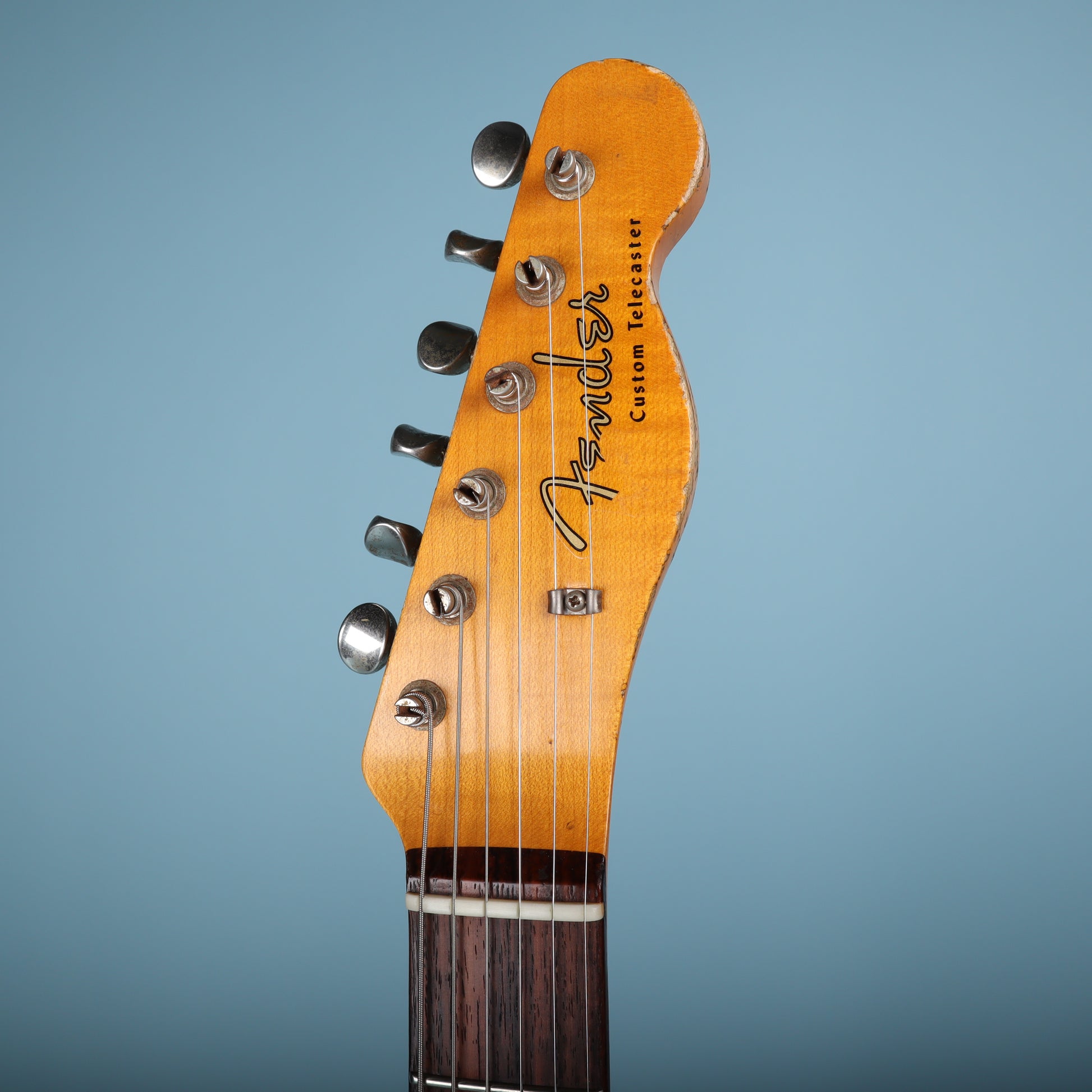 The heavy relic work is pure Custom Shop artistry. It has that broken-in, road-worn feel the moment you wrap your hand around it. No stiffness, no fighting the instrument. Just instant familiarity, like you’ve owned it for decades. The 60s Large “C” neck carve feels substantial without being bulky, and the early ’60s truss rod design is spot on for that vintage vibe. The neck is straight and the truss rod turns in both directions, exactly what you want in a high-end Custom Shop piece.