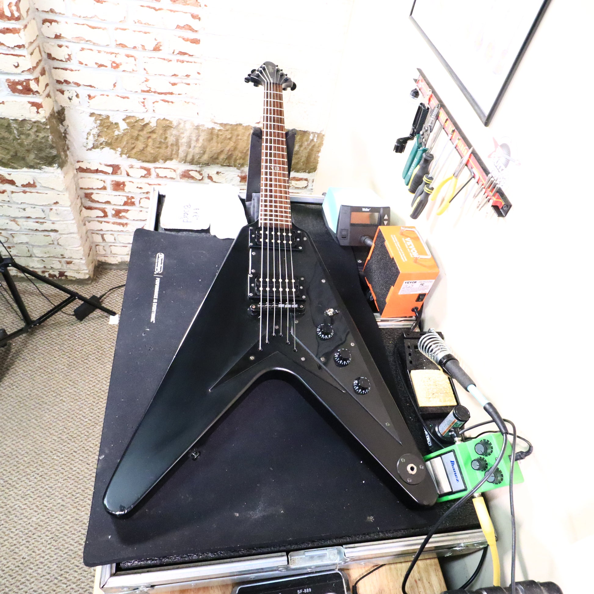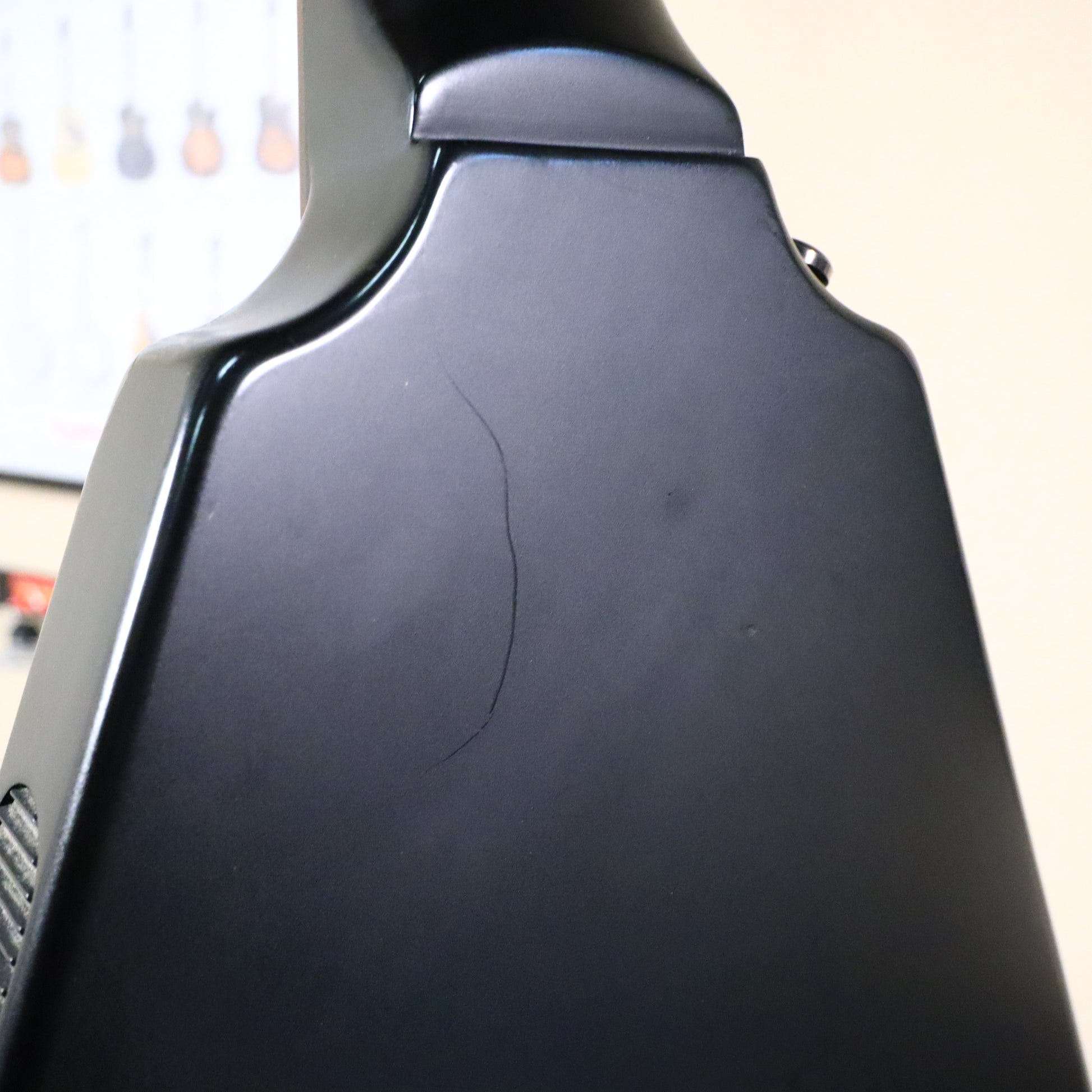 Featuring a streamlined, all-black aesthetic and powerful humbuckers, this guitar is built to deliver crushing rhythm and searing leads. It's the perfect statement piece for any stage or studio. Genuine Epiphone "Gothic" Series Flying V, known for its all-black, matte-satin finish (Pitch Black) that screams attitude. The iconic "Epiphone" logo and "XII" inlay at the 12th fret on the headstock and fretboard maintain the spooky, minimalist look.