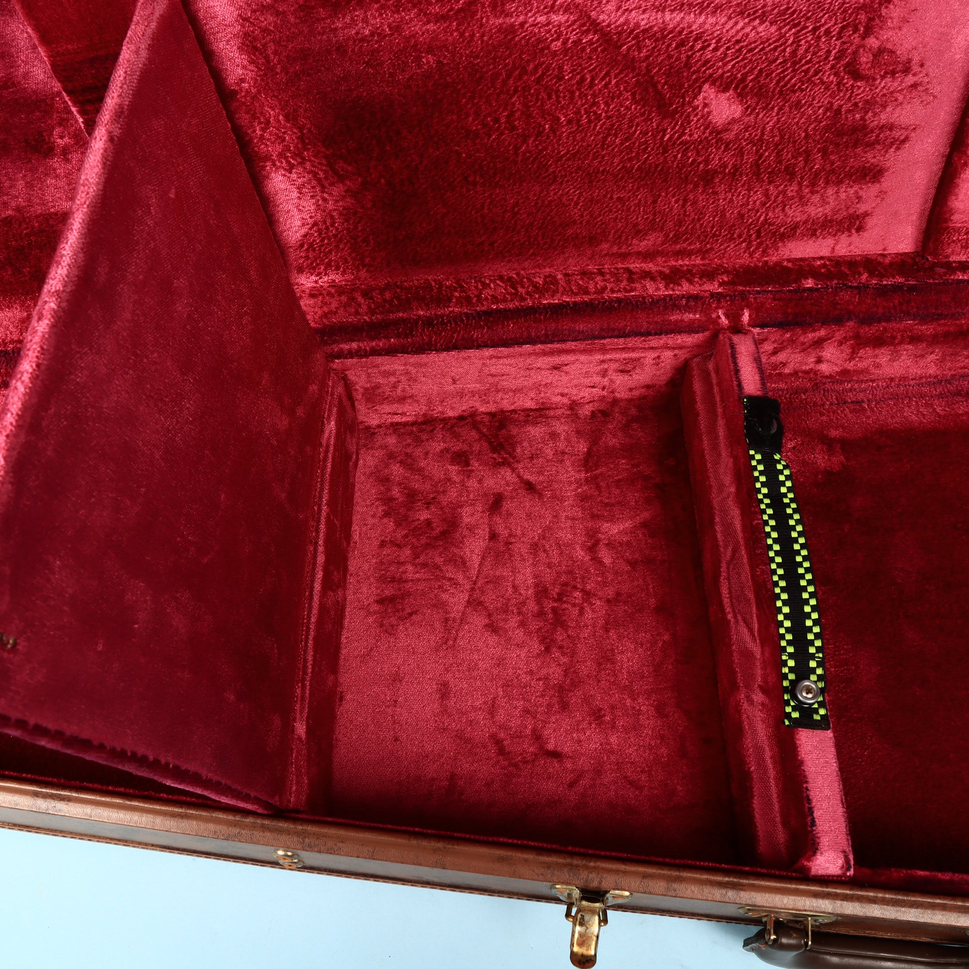 Inside, the plush red lining hugs a Flying V perfectly, keeping it secure and cushioned. There’s also an internal storage compartment for accessories like strings, straps, and tools.