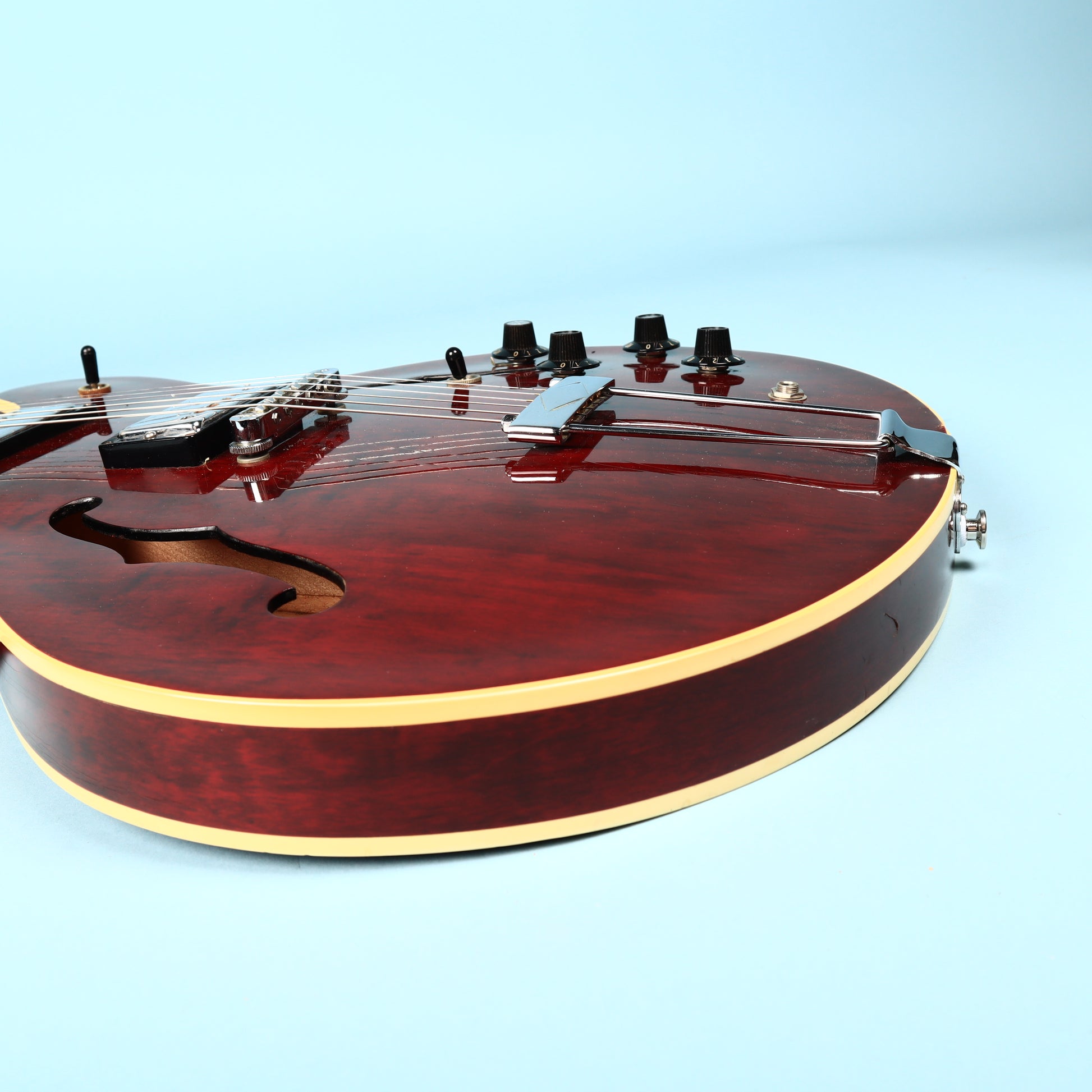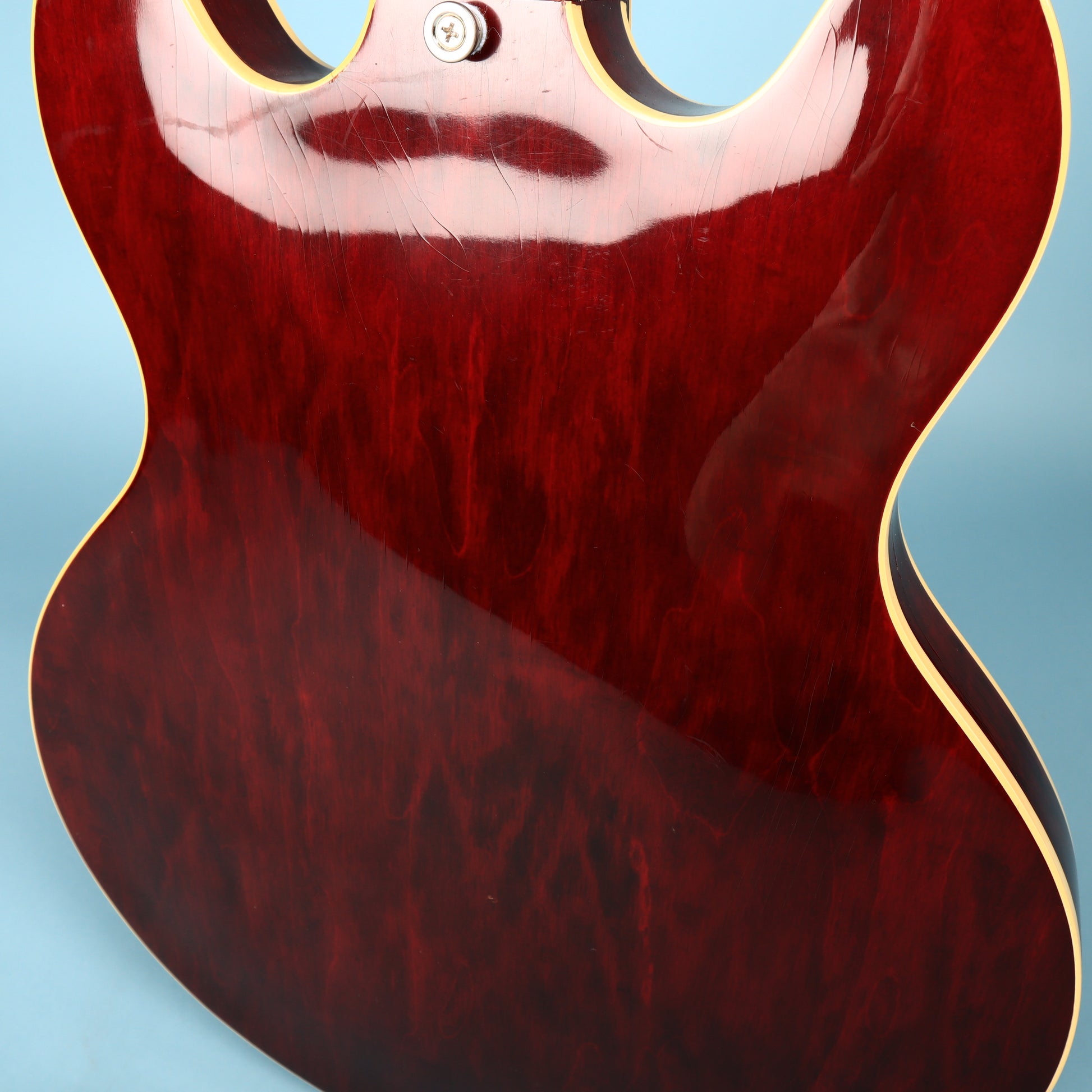 The 1976 ES-335 is legendary for its versatile tone, bridging the gap between hollow-body resonance and solid-body sustain. Own the quintessential vintage semi-hollow guitar...this ES-335TD in Cherry Red delivers the legendary tone and smooth playability that defined rock, blues, and jazz for generations. The original tar-back pickups are nice and well defined.