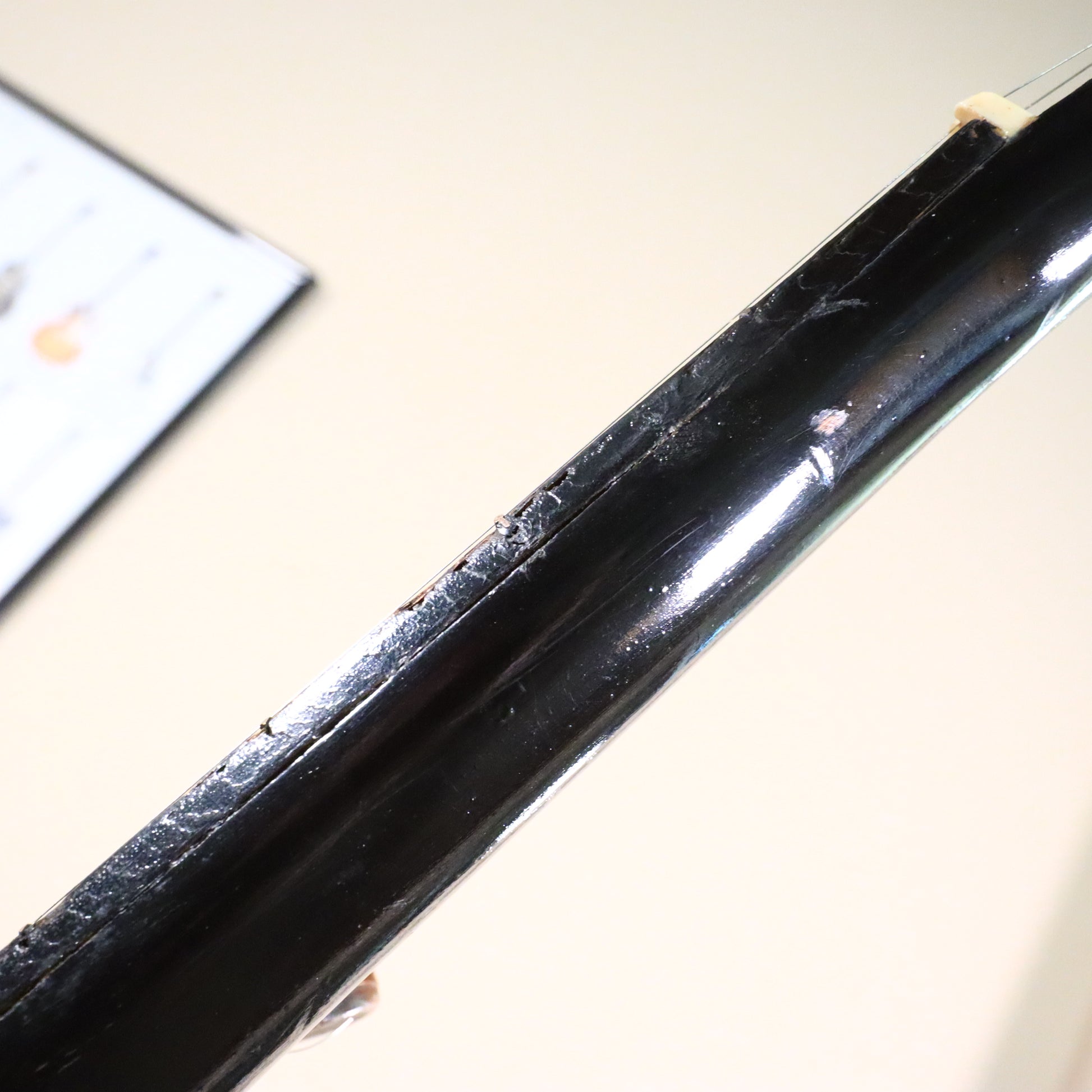 This banjo features a classic resonator design, making it perfect for loud, bright bluegrass or adding a resonant punch to folk music. The beautiful wood grain and meticulous inlay work on the fretboard speak to the care taken in its construction. It’s a road-tested instrument with a fantastic vintage vibe and a sweet, mature tone that only comes with age. Don't miss the chance to own a piece of vintage Japanese craftsmanship; this banjo offers the tone and build quality.