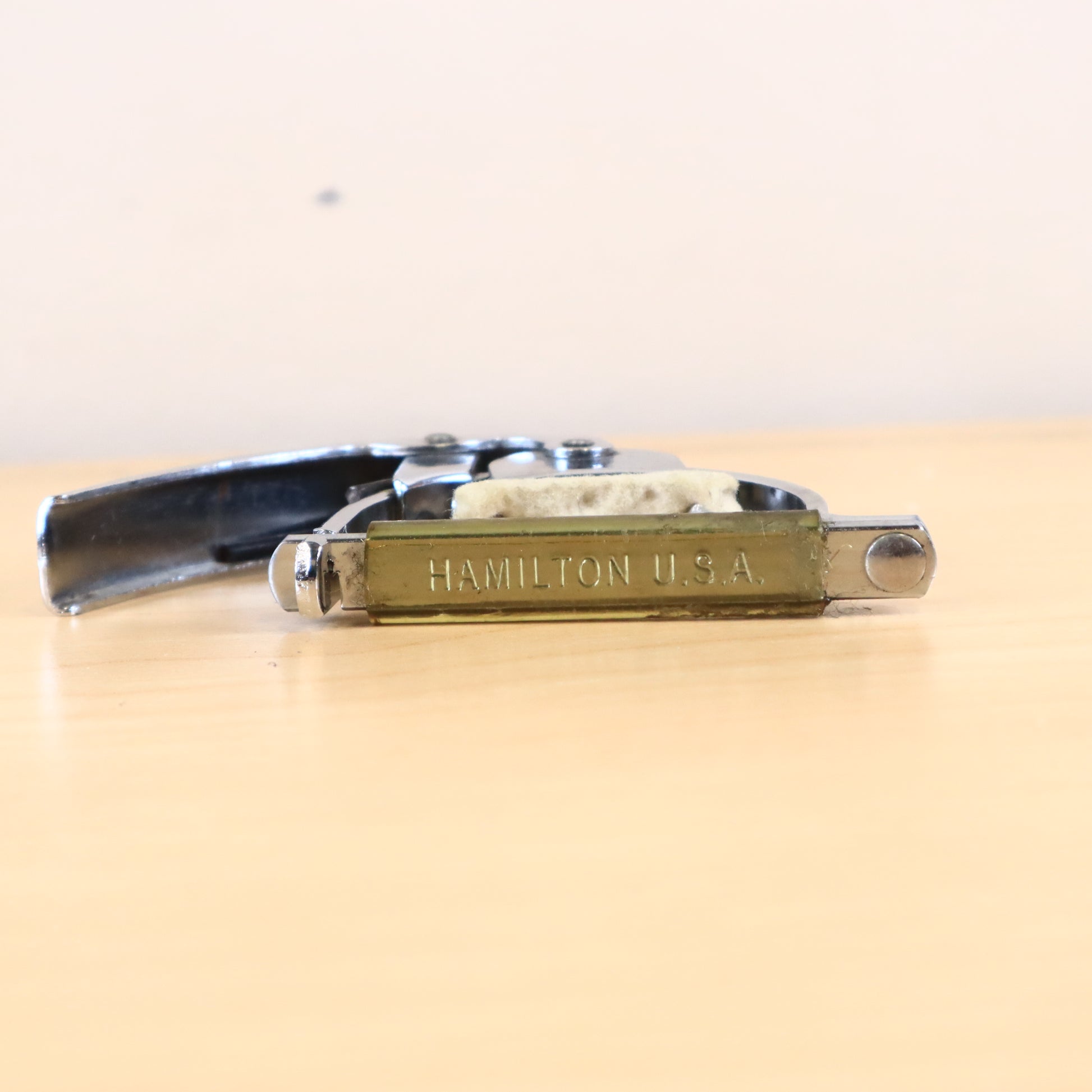 Discover the Vintage 1960s Hamilton USA Capo, a rare find that combines classic design with reliable functionality. Built to deliver consistent pressure across the fretboard, this capo ensures your guitar stays perfectly in tune while adding a distinctive vintage flair. Perfect for musicians and collectors alike, it offers both style and performance that stand the test of time. Enhance your playing with this authentic piece of musical heritage.