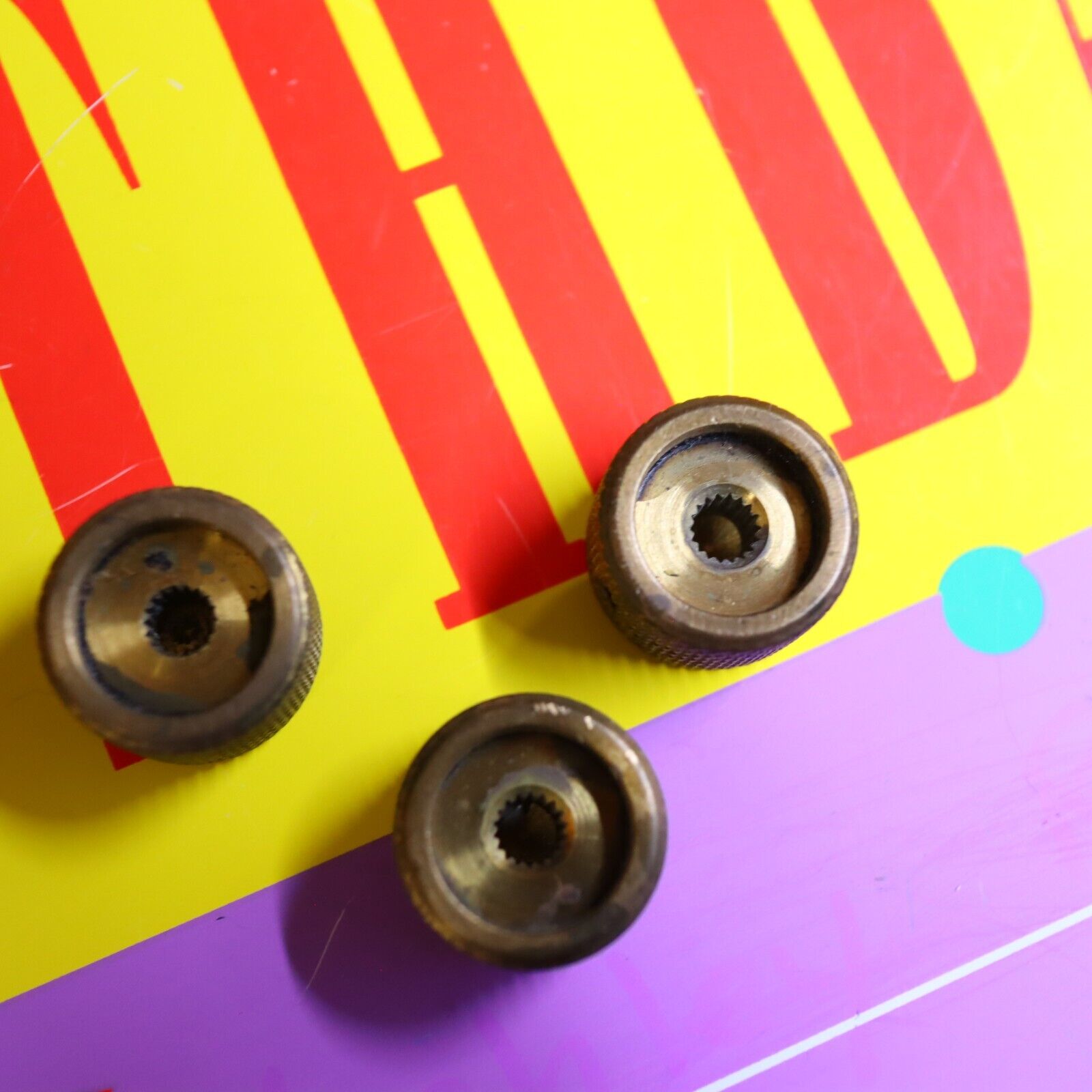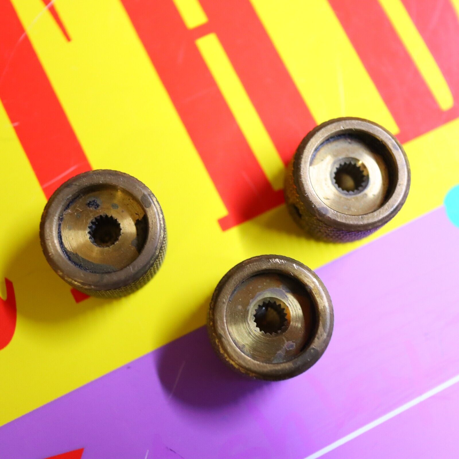 A cool set of vintage knobs 3 total. See pics for condition.